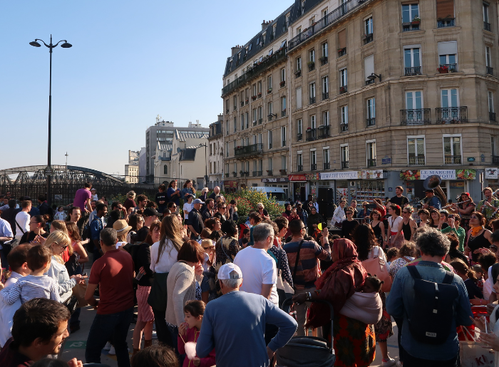 – 13h30 : Spectacles de l’école et du centre de loisirs Louis Blanc – 15h50 : Spectacles du collège Valmy – 16h30 : Échassiers – 17h15 : Spectacles du collège Aimé Césaire – 18h : Concert Samba avec Seu Elias – 18h45 : Échassiers – 19h30 : Accordéonistes – 20h15 : Concert Jazz et Soul avec Koaloa – 21h : Bal populaire avec DJ Condor Selecta jusqu’à 23h30