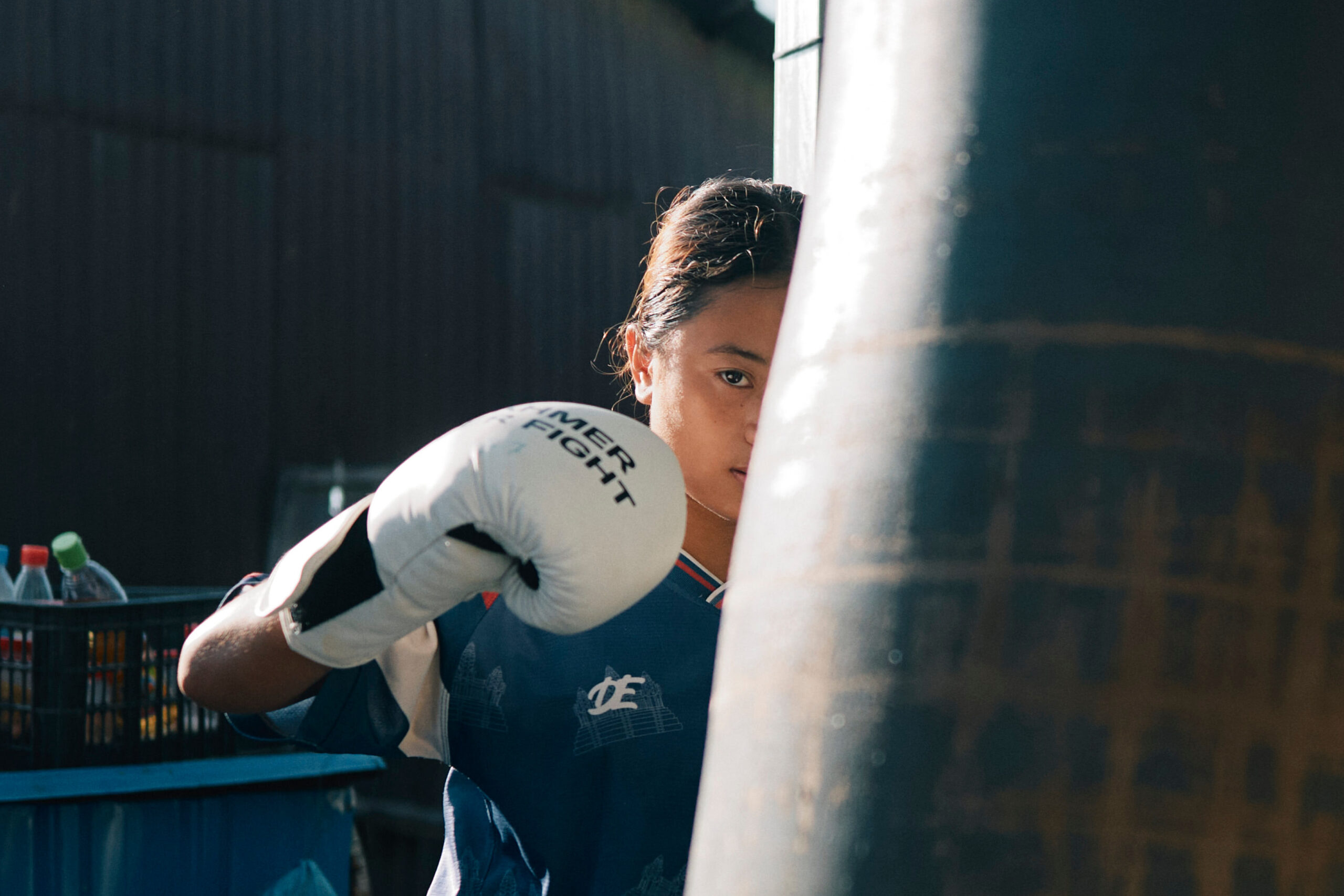Le bruit sec des sacs de frappe rythme l’échauffement. Vanda, Souannita et Dalin, 18, 14 et 17 ans, s’entraînent chaque jour à quelques kilomètres de Phnom Penh, dans une salle en plein air. Le père de Vanda, ancien boxeur de kun khmer, forme gratuitement les jeunes du village, « J’ai commencé avec ma fille, puis les autres sont venus ». Ici, peu de confort : baraques en tôle, dortoirs partagés. Souannita combattra bientôt au festival de l’eau. Comme beaucoup de jeunes cambodgiennes, elle rêve d’échapper à la pauvreté grâce à la boxe, sur les traces de Sam Taroth, star nationale et figure d’émancipation.