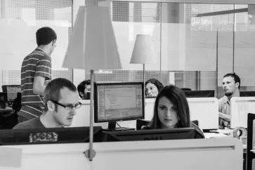 Suivant un cahier des charges précis édicté par l’entreprise, Cristian Zanin a photographié le personnel pendant les activités de la journée. Donner une vision concrète à un travail aussi immatériel que celui du secteur tertiaire, rendre visibles les échanges et les relations entre les acteurs professionnels, matérialiser visuellement l’action-même de réfléchir ou d’élaborer un projet : l’image n’a nul besoin d’être mise en scène, la photographie se constitue comme un espace ouvert dans lequel les formes vont et viennent, se posent un instant.