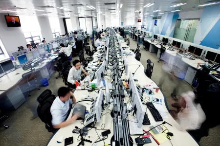 Surprise : la pédégère et les vices-présidents, tous en costumes trois-pièces, avec sérieux, sont portraiturés dans les poses de leur sport favori. Nous sommes en Chine dans un grand organisme financier, Standard Chartered Bank. Lucas Schifres –avec son expérience de photos d’entreprise acquise chez Bloomberg en France – subvient largement à leur besoin en photo pendant les cinq ans qu’il a résidé sur place. Il jouit d’une large autonomie dans le choix des sujets, de leur traitement, et peut se permettre des approches nouvelles : portraits en sportif, donc, vie dans l’entreprise, congrès, locaux, architecture intérieure, environnement urbain. Avec des documents soignés qui vont du reportage distancé aux reconstitutions avec acteurs (pourvu que ce soit positif !), Lucas Schifres donne un exemple fort du corporate et permet aussi, entre les lignes, de repérer certains traits propres au monde bancaire chinois et à l’image qu’il souhaite se donner.