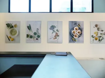 Ainsi la nourriture permet-elle de retrouver le jeu de l’enfant qui trace des routes sinueuses à travers son monticule de purée. Découpe un légume pour y découvrir une forme figurative. Evide un fruit pour y révéler un visage. Et fait de son assiette la page blanche de ses inventions. Les formes se précèdent, dialoguent, s’imbriquent. Les gestes peuvent être virtuoses ou minimaux : un monde naît à partir de presque rien.