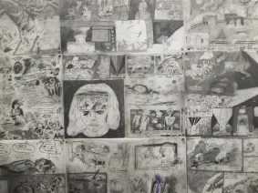 Un terrain d ‘expérimentation et de réactivation vivifiante, et qui, surtout, opère en simultané dans les deux médias, se manifeste depuis peu dans des œuvres très contemporaines. Ceci réside dans l’utilisation de la surface de la page – pour la BD, et de la superficie du mur qui accueille les images – dans le cas de la photographie.