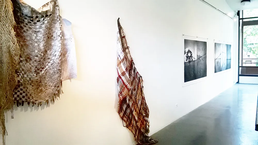 Les œuvres de Deborah Fischer mêlent des photographies liées à des voyages, des errances, qu’elles relient en les tissant. Le long de ces photographies comme des fils peuvent se lire des impressions diffuses, des sensations. Ces tissages sont la recomposition d’expériences vécues sous une forme nouvelle, qui pointent vers des sensations par un travail de reconfiguration des images. L’errance et l’observation s’y lient et s’y lisent, dans un travail qui peut être perçu comme une mise en abyme de la démarche photographique elle-même.