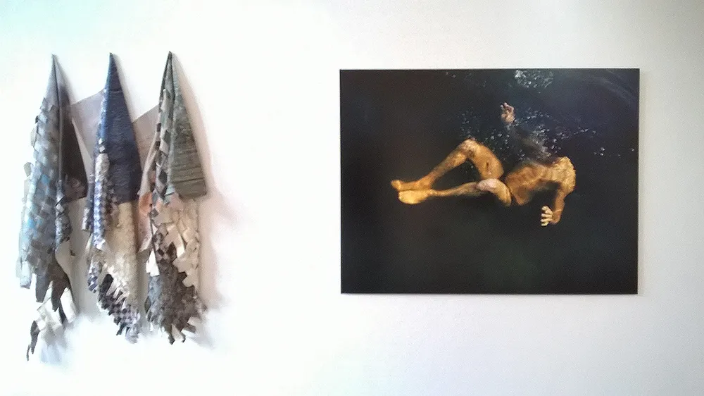 En suspens d’Isabella Hin vient souligner le potentiel dramatique des images tout en indiquant leur positionnement spécifique. Une photographie est toujours « en suspens », elle fige, semble arrêter le temps. Mais dans ce même mouvement, elle ouvre vers un fil continu, vers ce qui précède la prise de vue et va lui succéder. En montrant une immersion, En suspens vient éveiller l’attention du spectateur, qui se demande s’il s’agit d’un plongeon, d’une remontée. Pris au milieu d’un mouvement, il est conduit à replacer le moment fixe dans une dynamique.